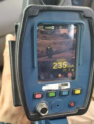 Uma motocicleta foi flagrada a 235 km/h na manhã do domingo (05), no km 93 da BR-232, no município de Sairé (PE). O registro foi feito por um radar móvel da Polícia Rodoviária Federal (PRF) durante ações de fiscalização.