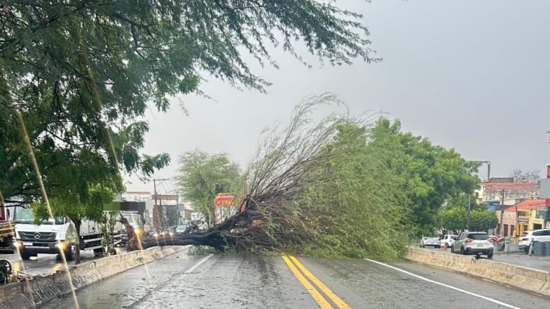 Uma árvore caiu no Km 409 da BR-232, em Serra Talhada, na tarde desta quarta-feira (4), após uma forte chuva registrada por volta das 16h20. O incidente provocou a interdição da via e chamou a atenção de motoristas que trafegavam pelo local.