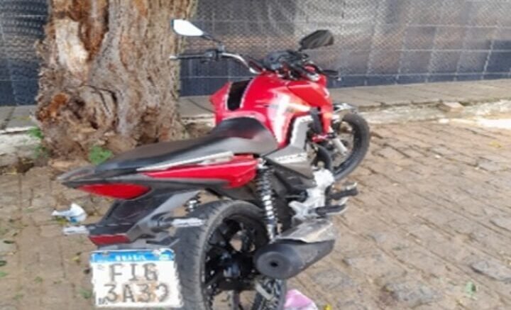 Diante da situação, foi iniciado acompanhamento tático, culminando na abordagem do condutor. Durante a verificação do veículo, por meio do sistema policial, foi constatado que a motocicleta, de placa FIG3A39, possuía registro de roubo.